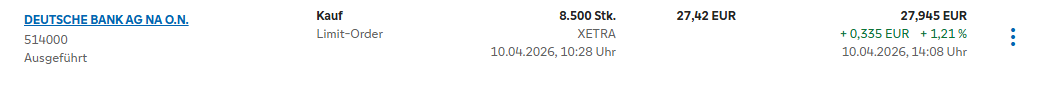 In halbwegs normalen Märkten, welche aktuell aber nicht gegeben sind wegen Geopolitik und Uni Credit, funktioniert meine Strategie nach Plan, aktuell lässt sich aber nicht wirklich etwas planen und strategisch angehen, zumindest nicht in der Art wie ich es so lange mit der Coba tun durfte.