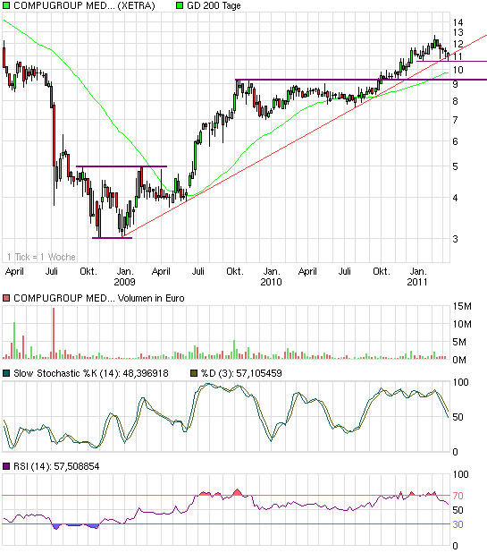Handelsvolumen sind die Kurs bei CGM mal wieder völlig willkürlich. Positiv ist natürlich, dass das Verkaufsinteresse ggw. sehr gering ist, allerdings muss man auch berücksichtigen, dass CGM durch die Japan Tragödie keinen einzigen Cent Umsatz und Gewinn verliert