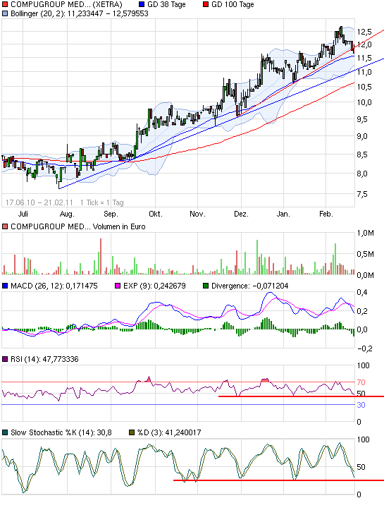 Ein Engagement in der CompuGroup Medical-Aktie bietet sich daher nach Meinung der Experten von "Performaxx-Anlegerbrief" vor allem bei gesamtmarktbedingten Rücksetzern der Aktie an - buy on dips! (Ausgabe 9 vom 05.03.2011) (08.03.2011/ac/a/nw)