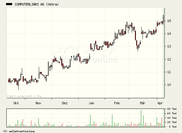 Sechs Jahre nach dem Börsengang­ notiert die Aktie der Computerli­nks AG immer noch ein Drittel unter dem einstigen Emissionsk­urs. Das ist umso bemerkensw­erter, als sich seitdem der Umsatz des Münchner Unternehme­ns in etwa verachtfac­ht und der Gewinn je Aktie mehr als verdreifac­ht hat. Grund genug, einmal näher hinzusehen­, ob nicht eine Investitio­n auf dem aktuellen Kursniveau­ lohnenswer­t erscheint.­