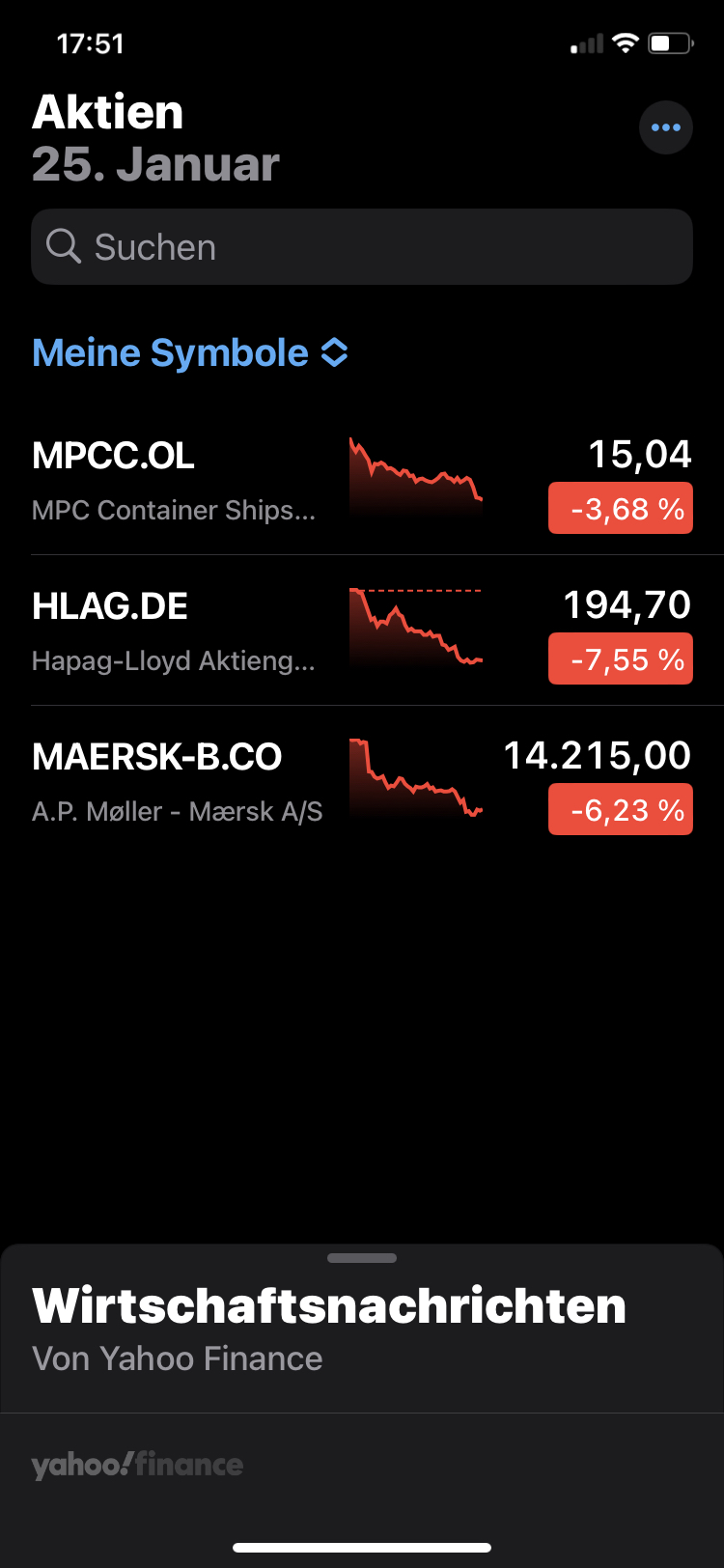 Du musst aber auch die Bewertung berücksichtigen - die Hamburger Hapag Lloyd wird gerade in der aktuellen Börse Online zum Kauf empfohlen - Turnaround-Chance, günstig bewertet - und das bei einem 2023er-KGV von 11,4 !!!!!!!!!!!!!!!!!!!!!!!!!!!!!!