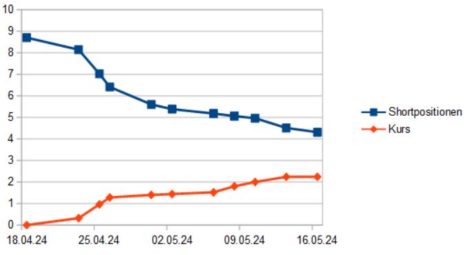 Letzte Zahlen vom 13.05.24: 4,51%, vorher 4,96% Shortpositionen.