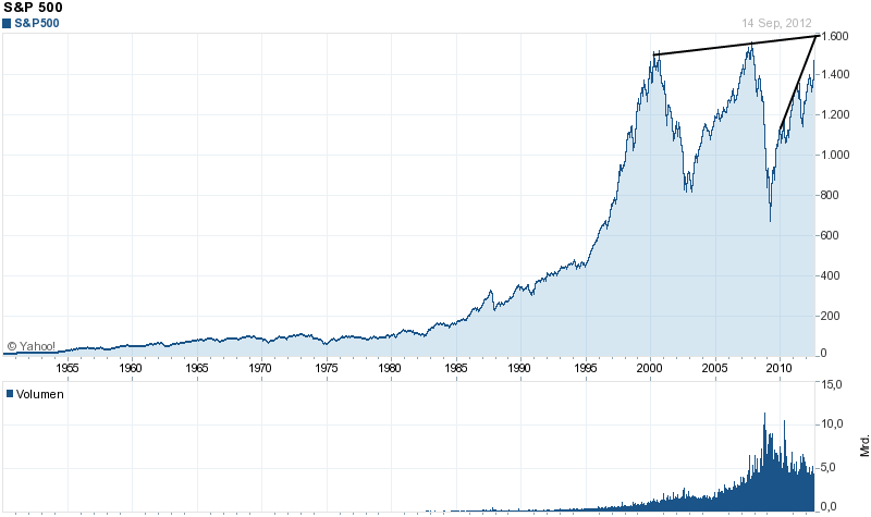Deine Annahme, dass die Tiefpunkte höher stehen als voarangegangenen lässt sich schnell wiederlegen: Schau Dir den obigen S&P Langzeitindex an und sag mir warum der letzte Tiefpunkt bei ungefähr 600 und der vorangegangene bei 800 lag?