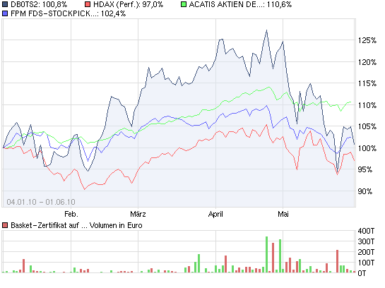 Im Chart sind der HDax, der beste Deutschlandfonds 2010 (Arcatis) und der beste