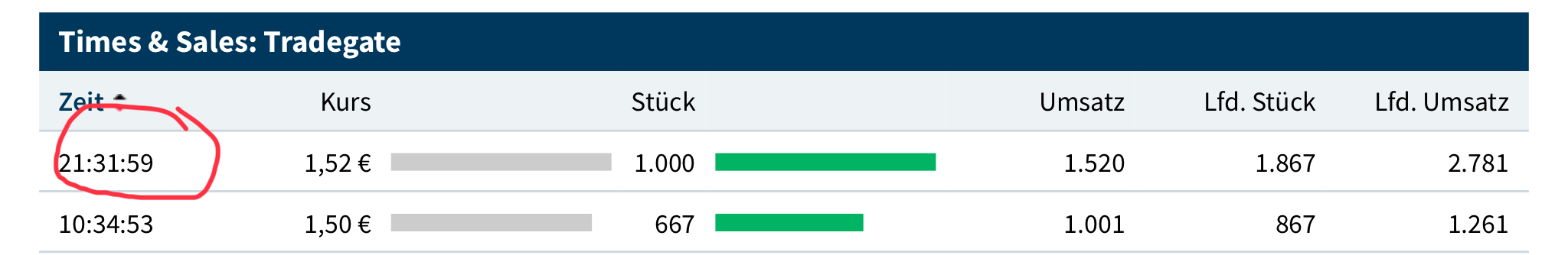 Das überwinden dieser Marke fällt der Aktie schwer. Es können noch Wetten abgeschlossen werden, ob sie es heute oder in den nächsten Tagen schafft.