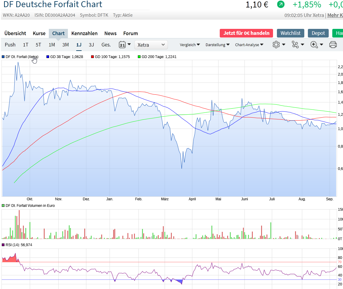 Auf Xetra stehen 50k bid zu ca.1€