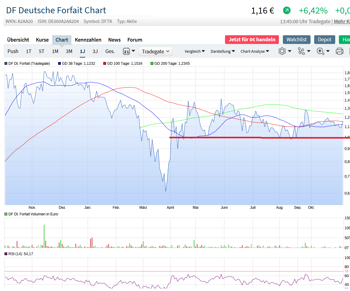 Charttechnisch hat sich um 1€ ein Bodengebildet, RSI aktuell um 40%