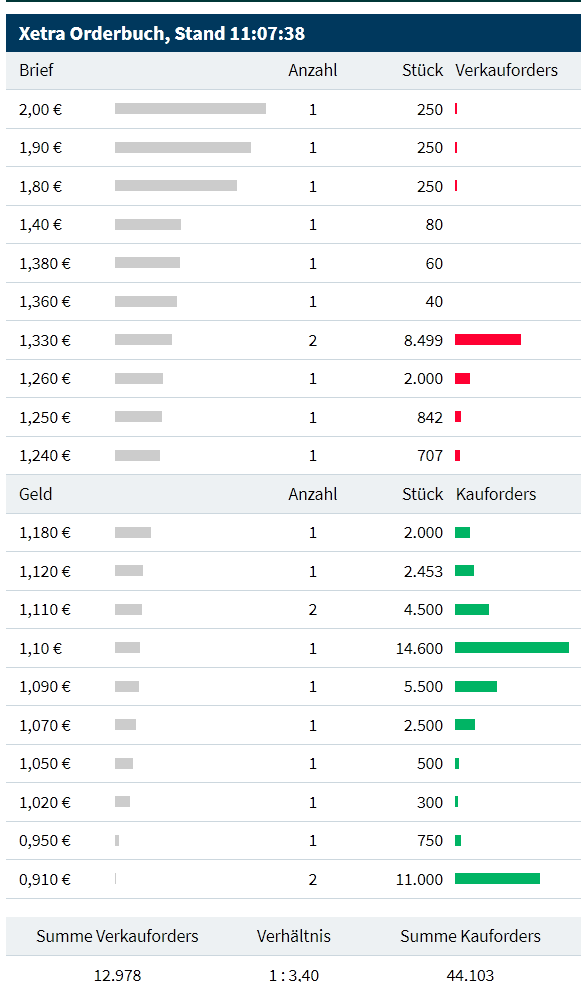 die Stücke bei 1,23 - 1,26 € sind weggekauft, jetzt gibts aktuell erst wieder welche bei 1,36 € im Angebot.