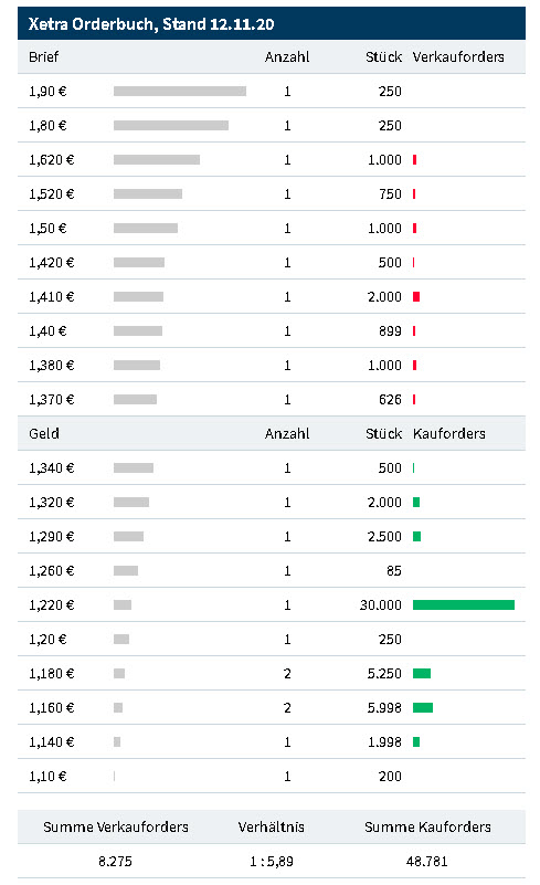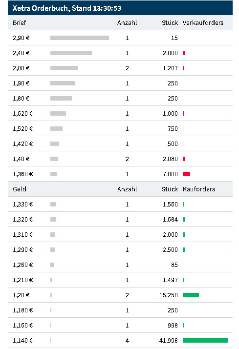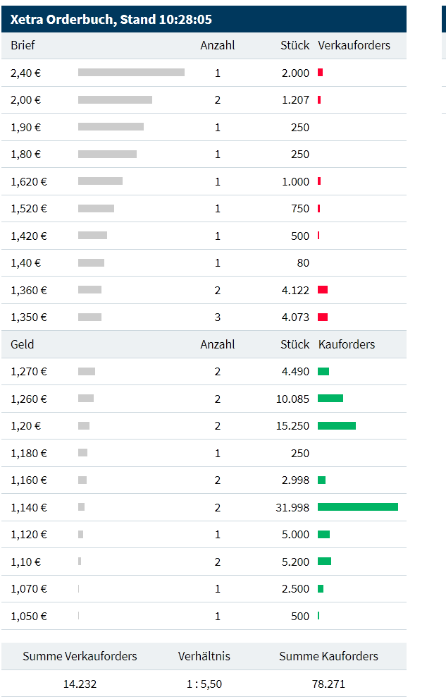 Das Xetra Orderbuch ist der Hammer. Kaufinteresse 62k ist aktuell das 6,8 Fache der Ask Seite 9,1k.