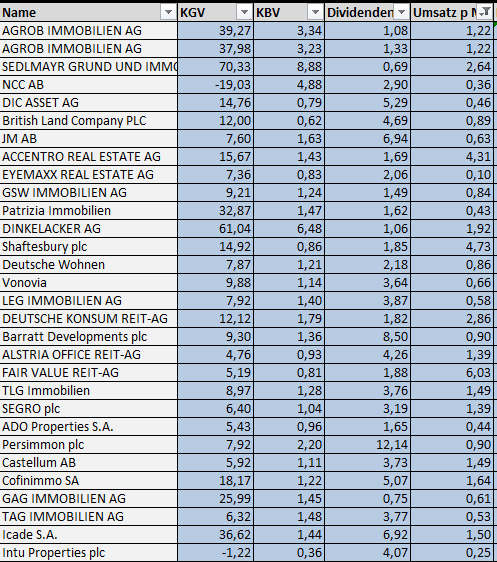 Hier noch ein Überblick über den gesamten Immobilien­markt in Europa und die Bewertung verschiede­ner Unternehme­n.