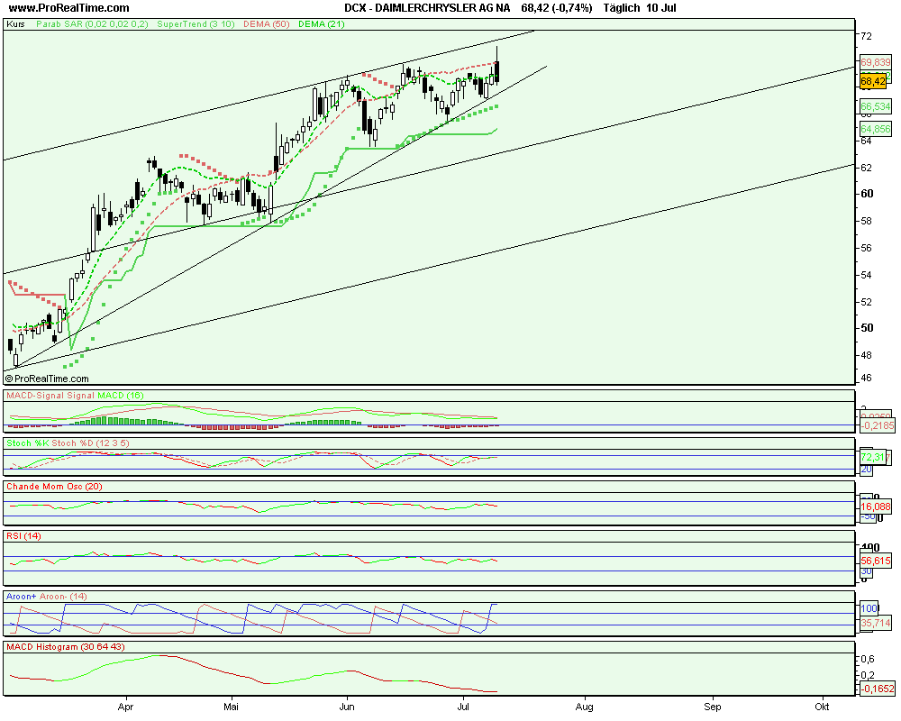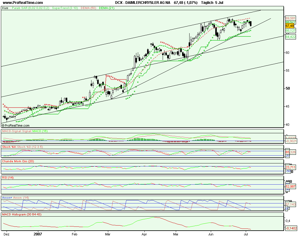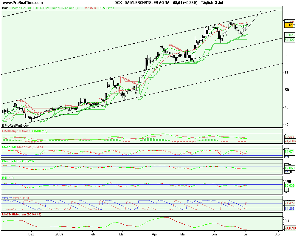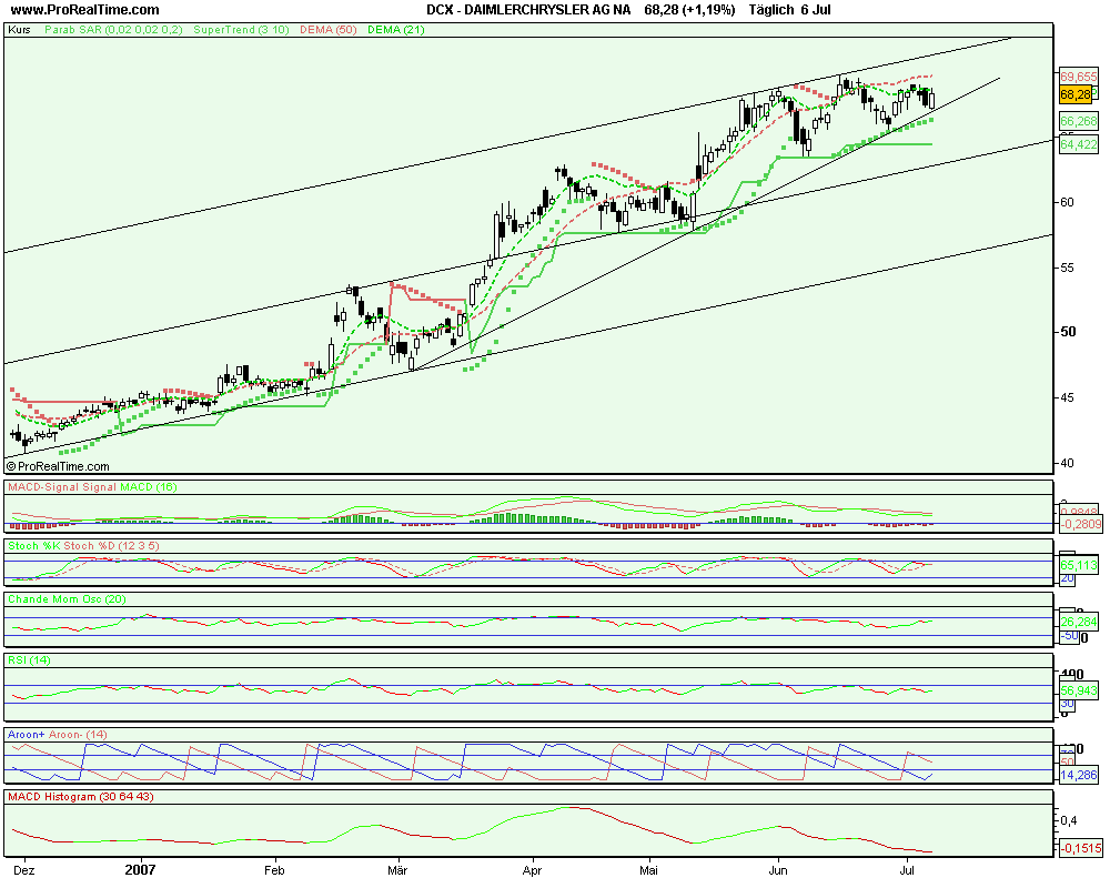 Vor diesem Hintergrund bleiben die Analysten von Société Générale bei ihrer Empfehlung die Aktie von DaimlerChrysler zu kaufen. (Analyse vom 09.07.07)