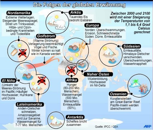 Am Freitag hatten die Vereinten Nationen (UN) im zweiten Teil ihres Weltklimaberichts vor katastrophalen Folgen der globalen Erwärmung für die unterschiedlichen Weltregionen gewarnt. Der Klimawandel wird demnach auf allen Kontinenten viel früher zu weit verheerenderen Schäden führen als bislang angenommen.