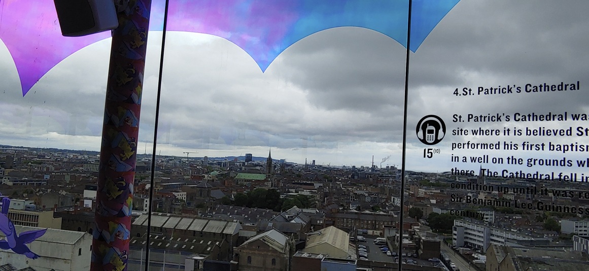 das ist in Dublin, in dem Brauereimuseum, ganz oben. Beim Eintrittspreis ist ein Guinnes - von eben jenem für uns frisch gezapft - dabei.