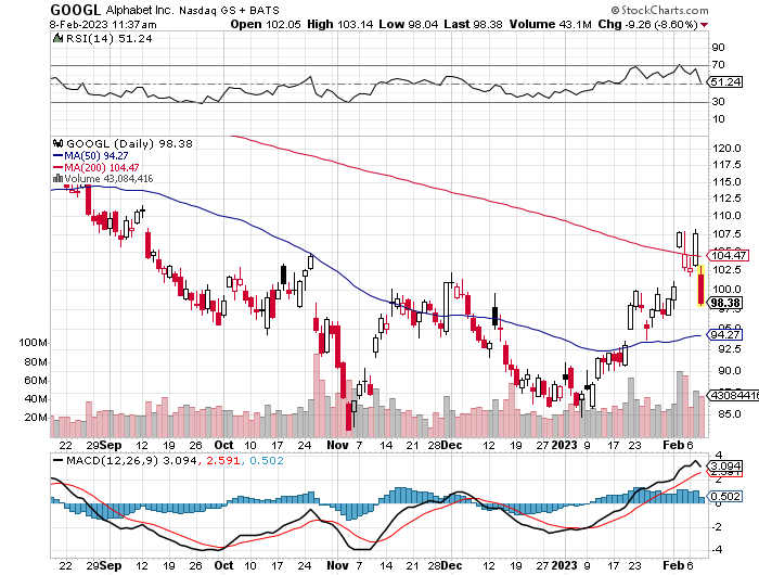 [Reuters] brachte den Kursrutsch mit einem Fehler von Googles neuem Chatbot Bard in Verbindung, allerdings ist ein Zusammenhang nicht nachweisbar. Wahrscheinlicher ist, dass Googles Produktpräsentation am Mittwoch hinter den Erwartungen der Anleger zurückgeblieben war.