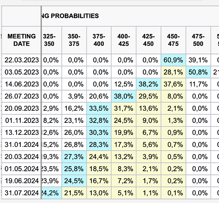 leider ist das zinsniveau in europa viel tiefer als in den usa, die ezb wird deshalb kaum um etliche weitere zinsschritte herumkommen. allerdings ist angesichts der turbulenzen ein halbes prozent anstieg nicht mehr gesichert, vielleicht wird man vorsichtig erstmal um ein viertelprozentchen erhöhen und die inflationszahlen für märz abwarten, welche dann mitte april bereitsstehen.