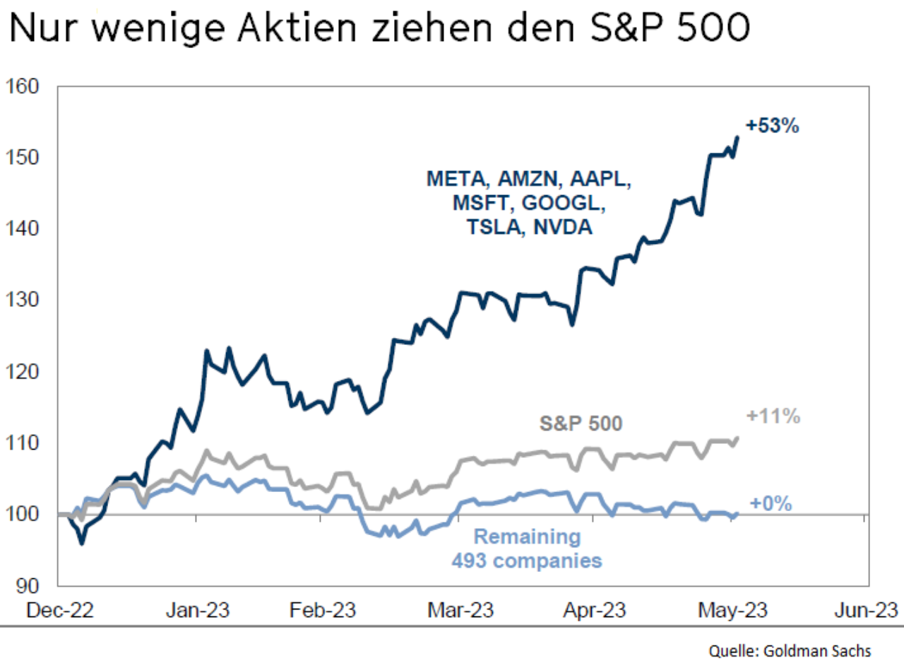 In der aktuellen Inflation/Stagflation rächt sich das nun. Die US-Wirtschaft wächst unterdurchschnittlich, so dass die mit Billiggeld finanzierten Investitionen nicht genügend Ertrag (ROE) abwerfen. Vor allem aber wird das "Rollen" auslaufender Bonds nun sehr viel kostspieliger, schon allein weil es bereits auf "sichere" US-Staatsanleihen 3,7 % Zinsen gibt.