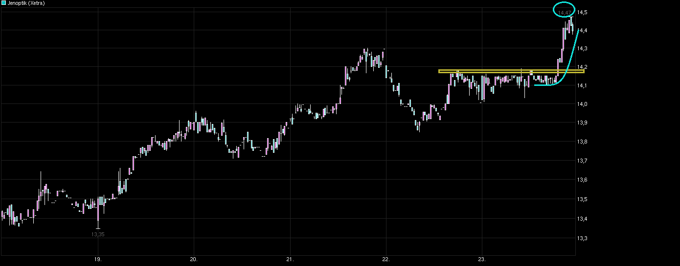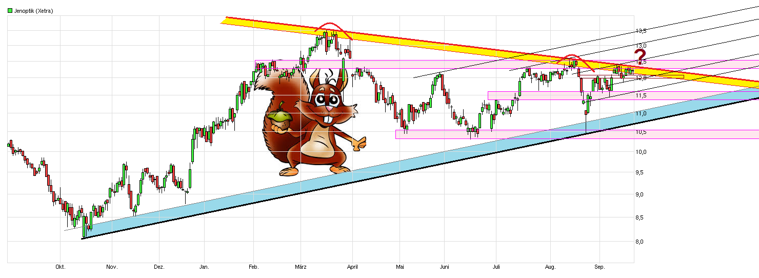 Heute könnte zumindest die Warterei vielleicht erstmal vorbei sein was ein SK über 12,05 angeht. Aber da läge mit der Region von ca. 12,50/60 und dem seit März fallenden Abw.trend auch schon wieder zwei potenzielle Bemsklötze nicht weit entfernt von den aktuellen 12,28€. Die Halbjahreszahlen waren ja besser als mancher dachte und auch der Ausblick für das 2.Hj.15 war vielversprechend. ( =>http://www.ariva.de/news/...uechern-und-kraeftigem-Gewinnplus-5454196 "...Jenoptik haben vor allem gut laufende Geschäfte mit Energie- und Sensorsystemen im zweiten Quartal ein deutliches Gewinnplus beschert. Hinzu kommt ein dickes Auftragspolster, so dass Unternehmenschef Michael Mertin am Dienstag in einer Telefonkonferenz von einer guten Basis für die Jahresziele sprach. Mit überproportionalen Zuwächsen rechnet der Vorstand in den Regionen Amerika und Asien.Dabei stimmen ihn vor allem eine anziehende Nachfrage aus der Automobilindustrie zuversichtlich. Mittlerweile setzt Jenoptik ein Drittel des Konzernumsatzes in diesen beiden Regionen um..." ). Ist halt die Frage wie sich die Auftragsbücher in 2016 füllen werden, da man ja u.a. auch im Automobilbereich tätig ist (der unter schwächerer Nachfrage in China/Asien leiden könnte) und man auch mit Asien direkte Kundenbeziehungen hat. Von daher mal schauen, ob man bei den Q.3 Zahlen schon etwas zu hören bekommt, ob Jenoptik da irgendwelche Vorzeichen sieht, daß sich etwas abkühlt. Ansonsten sind aber natürlich so Aufträge wie jüngstens von der US Marine oder die Bahntechnik-Aufträge für Österreich/Polen/Tschechien positiv zu sehen, da sowas eher unabhängig ist von konjunkturellen Dingen in Asien