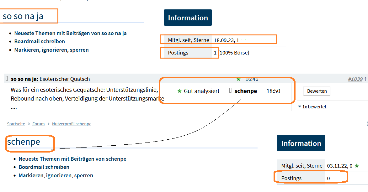 Oh, extra zum bepöbeln angemeldet? Oder persönliches Stalking? Ich hoffe keine Mehrfach-ID. Tja, also ich sitze hier gerade in meinem Haus, was von diesen ja angeblich so nutzlosen Methoden bezahlt wurde. Diese Methoden sind an der Börse bewährt und akzeptiert bei Leuten die professionell agieren. Von daher ist das Problem vielleicht nicht die Methode, sondern Leute die sich nie wirklich tiefergehend mit Börse und diesen Methoden beschäftigt haben. Kennt man ja heute z.B. auch aus den sozialen Medien, daß Leute in der Anonymität gerne bepöbeln bei gleichzeitigem fehlendem Eigenwissen. Einfach alles ablehnen was man nicht versteht. Da das Pöbelposting null eigenen Erläuterungen zur Jenoptik-Aktie beinhaltet, muß man erstmal davon ausgehen, daß offenbar auf der Gegenseite auch keine bessere Methode existiert. Genau mein Humor. Und schönen Gruß an den User Schenpe, der dafür auch noch dem Typen einen grünen Stern gab. Seit 3.11.22 angemeldet und bis heute kein einziges Posting, um zu belegen man verstünde selber was von der Börse. Da haben sich ja zwei gefunden.