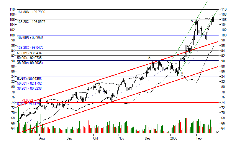 Der Kurs ist damit technisch leicht überkauft, liegt aber andererseits deutlich "im Trend"...