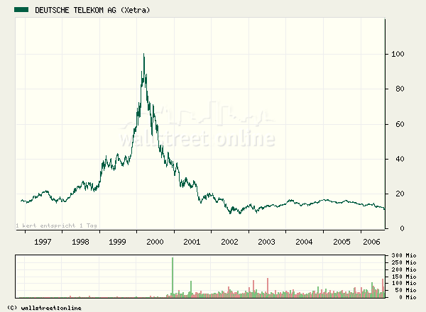 Am 10. August 2006 schrieb ich im Beitrag "Eine echte Katastrophe" zur Deutschen Telekom: Der Bereich zwischen 10,87 und 11 Euro erfüllt alle Voraussetzungen für ein - zumindest temporäres - Preistief. Eine technische Gegenbewegung ist wahrscheinlich. Die schlechten Nachrichten und pessimistischen Zukunftserwartungen dürften weitgehend eingepreist sein. Das Chance-Risiko-Verhältnis ist als günstig einzustufen.