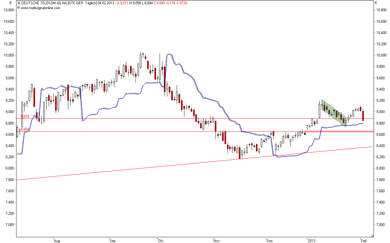 auf dem aktuellen Niveau können Telekomaktionäre mit einer Dividen -Rendite 2013 von ca. 8 % rechnen.