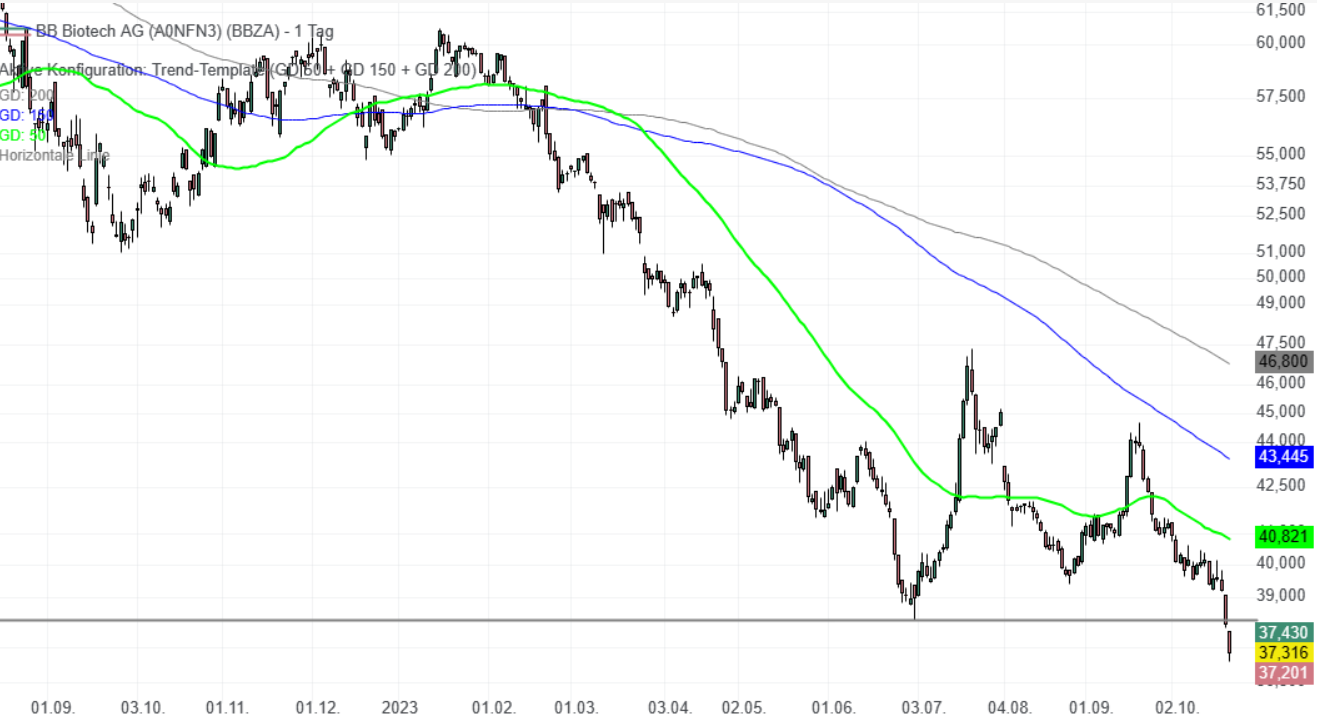 Für BB Botech könnte es noch weitaus heftiger kommen, Beteiligungen wie Mersana oder Esperion könnten auch perspektivisch schnell insolvent sein, Moderna ist m.E. immer noch zu hoch bewertet und BB Biotech hält leider eine sehr große Beteiligung. Ich denke die Unterstützung bei 40 CHF kann leider nicht gehalten werden.