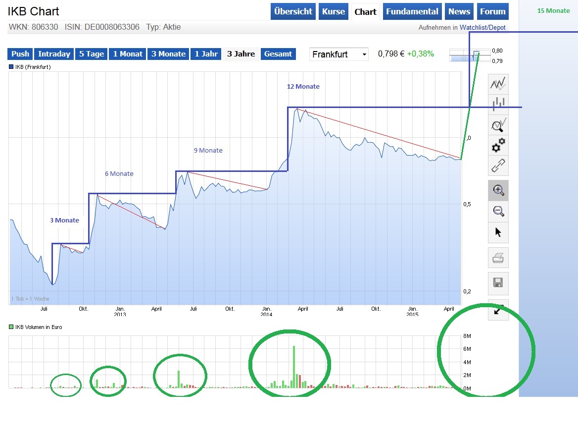 Der Ausbruch der IKB-Aktie verläuft nach meiner persönlichen Glaskugel vorausschaubar und proportional zur Gesundung des Geschäfts.