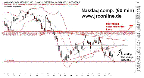 "...Wir gehen daher weiterhin von einem Test der Tiefs aus, welche die US-Indizes zur Monatsmitte markierten. Prallt der NASDAQ Composite an dem Widerstand bei 1.940 ab, würde eine Bewegung in Richtung 1.915 eingeleitet werden..."