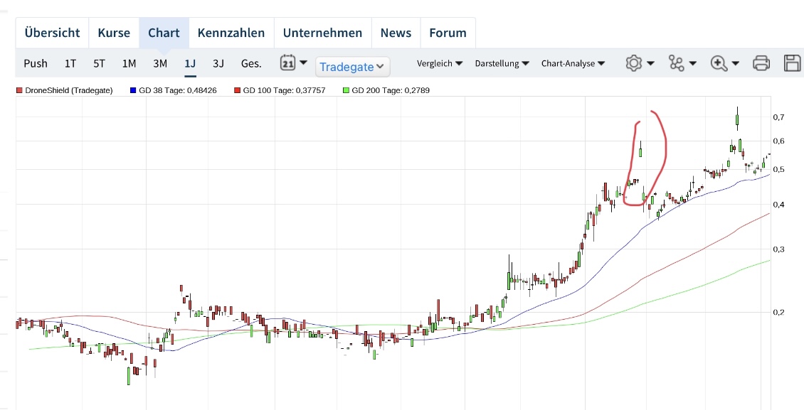 Wie auch immer: Droneshield ist ein Titel, der Investoren reich machen kann. Und ich bin gespannt, wie es weiter geht. Ich hoffe btw. nicht auf eine baldige Übernahme, da ich dem Unternehmen weit mehr zutraue, als bei einem Kauf für z.B. 2€/Aktie drin wäre.