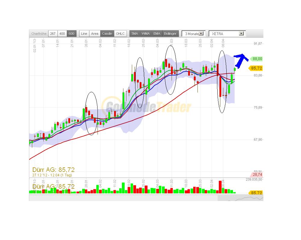 @Karlie: du fragst wegen einem Neuinvest in Dürr oder bist Du schon investiert und möchtest die Spitze wissen um auszusteigen? Einige hier (und ich) sind seit <30 dabei und deshalb entspannt. Bei 77 hättest du gut noch einsteigen können. 10% sind denke ich auch jetzt noch drin, aber das Eis wird dünner. Eine Glaskugel hat niemand. Ich habe direkte Kontakte zu Dürr es läuft super, die nächsten Jahre sind eigentlich entspannt zu sehen. Aber wer weiss, was unsere Affen in der EU noch so veranstalten. Da ist der Dürr Kurs in der Vergangenheit immer ziemlich mit in die Knie gegangen. Im Großen und Ganzen ist Dürr ein sicherer Invest. Wie hoch das noch geht kann Dir keiner sagen.
