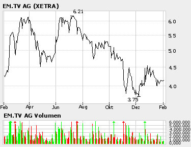 Der Frust als EMTV'ler ist kaum noch auszuhalten. Aktien tiefrot. Mäßige Analystenstimmen. Das Wort /Fussballrechte/ kann man auch nicht mehr hören.