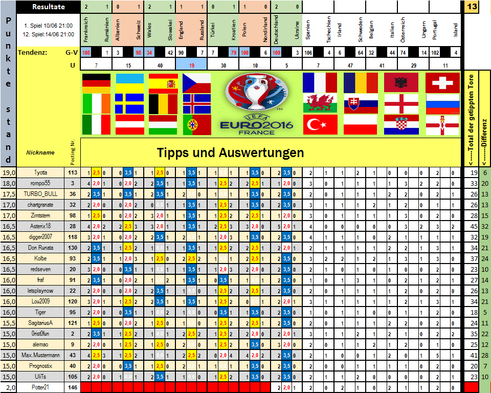 EM 2016 Tipprunde 1 Vorrunde Teil1