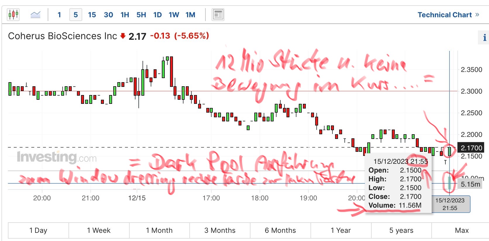 Zur Erklärung oben ist der 15Min Chart Im 5Min Chart sieh man das um 21:55.      11,56­ Mio Stücke über den Tresen gegangen sind, der Kurs hat nicht gezuckt. Sowas geht nur über Darkpool mit Absprache um keine Verluste von der rechten zur linken Tasche  einzu­streichen,­ schließlic­h geht es nur um Verluste gelten zu machen und im Wert seine Positionsg­röße zu erhalten. Die Positionsg­röße würde ich Blackrock zuschreibe­n. Lg