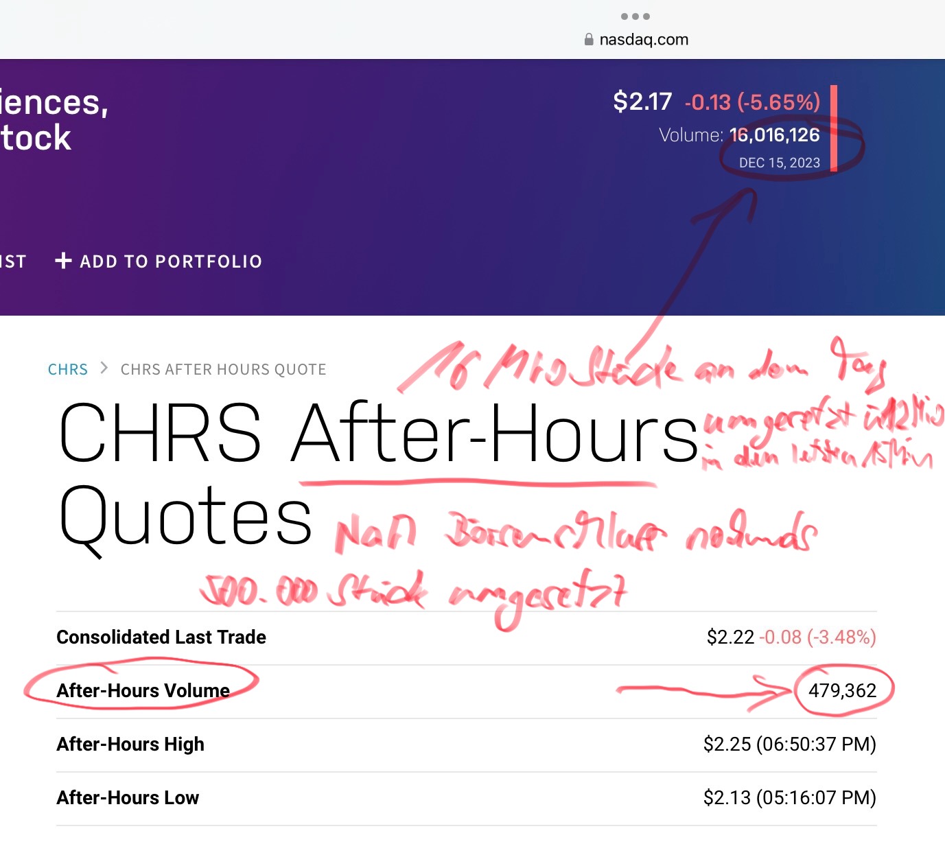 CHRS Marktkap 220Mio$ vs. Formycon 930Mio € Window Dressing von einigen Fonds haben die Q Zahlen genutzt um massiv Druck auf die Aktie auszuüben.­ CITADEL ADVISORS, BLACK ROCK sind dafür bekannt das sie massiv shorten bzw in beiden Richtungen­ Geld verdienen.­ Würde ich jetzt nicht überbewert­en, die Aussichten­ mit ihrer Pipe lassen für mich keinen anderen Schluss zu das wir von der Marktkap Formycon & die Strüngeman­n Grp hinter uns lassen;) Gute Nachrichte­n werden das Short Interest zum platzen bringen?! Lg