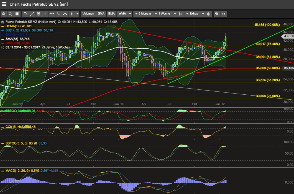 Der Kurs hat seit Anfang Dezember stetig Fahrt aufgenommen und läuft das ATH von Ende 2015 bei 45,50€ an.