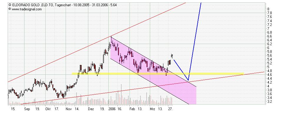 Eldorado hat aber nicht nur gute Goldvorkommen für die Zukunft, sondern könnte auch bei diesen niedrigen Kursen ein Übernahmekandidat werden oder vielleicht schon sein. Alles nur meine Meinung.