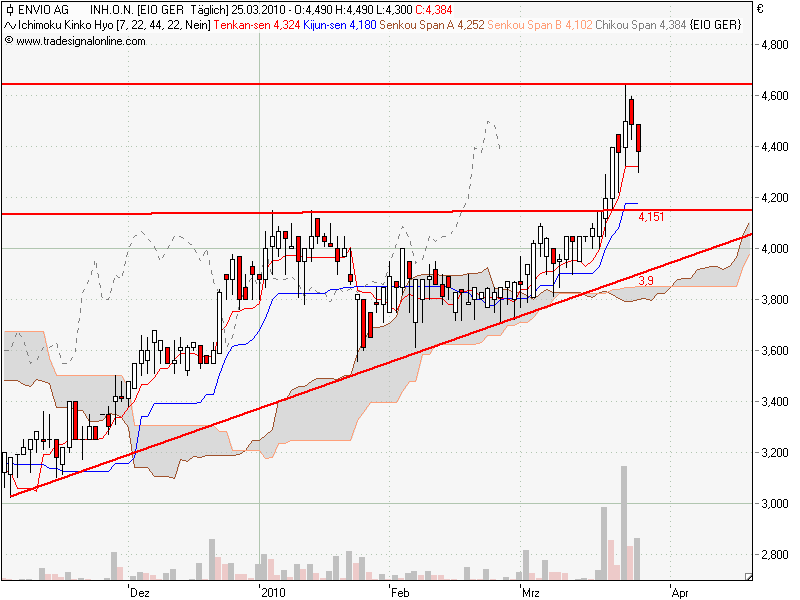 Die Schätzungen für das Jahr 2010 sind sehr konservativ. Die Chancen einer positiven Überraschung stehen gut. Schafft es die Firma tatsächlich, mit ihrer Aufbereitungsanlage für Biogasanlagen eine dicken Fußabtritt zu hinterlassen, könnte das dem Aktienkurs einen deutlichen Schub geben. Legen sich Anleger jetzt die Aktie ins Depot, können sie sich an der geplanten neuen Gesellschaft beteiligen. Doch auch so ist Envio mit einem geschätzten Kurs-Gewinn-Verhältnis von rund zehn immer noch günstig zu haben.