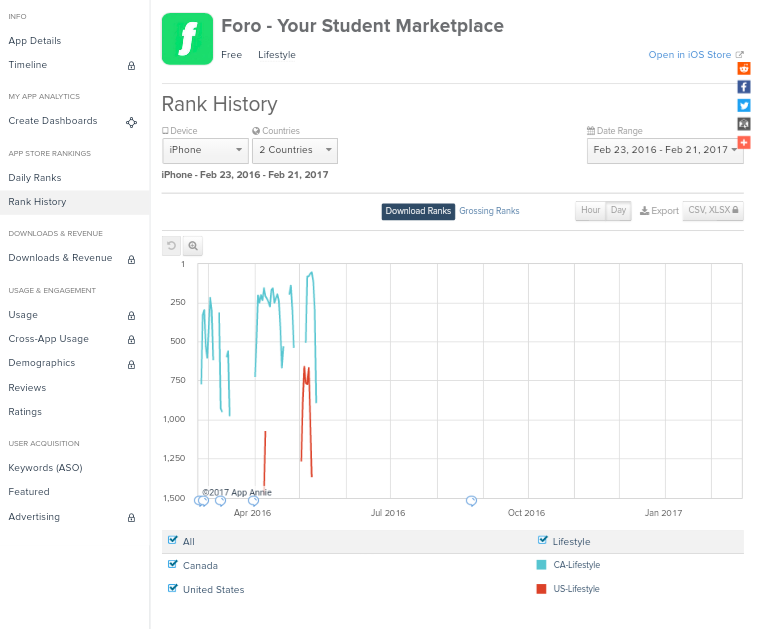 Sorry! Your app does not rank in the selected category ranking date range.