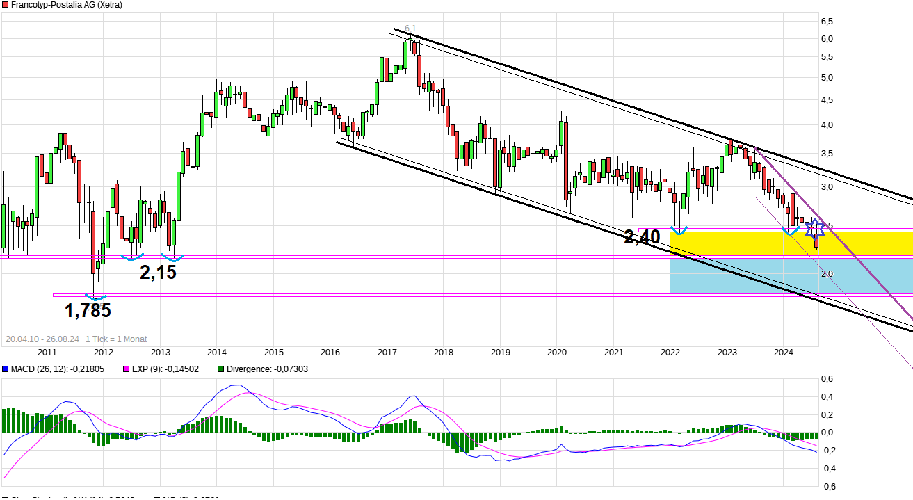 Auf den ersten Blick sieht die Bewertung hier ja durchaus niedrig aus und vielleicht ist daher auch das Abwärtsrisiko nicht so groß. Aber bei einem Investment geht es ja weniger darum nicht viel zu verlieren, sondern möglichst viel zu gewinnen. Und da ist die Frage was hier denn die Kurse wieder in absehbarer Zeit deutlicher nach oben treiben soll. Die grundsätzliche Frage ist zudem, ob es sich "nur" um einen nicht wachsenden Wert weiter handelt oder ob nicht vielleicht sogar künftig die Schrumpfung immer weitergeht, die man schon 2023 sehen konnte und die auch 2024 laut der Prognose nicht unwahrscheinlich ist. ( Prognose 2024: Die Geschäftsentwicklung 2024 wird unverändert von den schwierigen gesamtwirtschaftlichen Rahmenbedingungen beeinflusst. Zusätzlich sind die marktspezifischen Entwicklungen im Briefmarkt weiterhin herausfordernd. Der Vorstand erwartet daher für das Geschäftsjahr 2024 für den Konzern einen Umsatz und ein EBITDA auf Vorjahresniveau oder leicht darunter...").