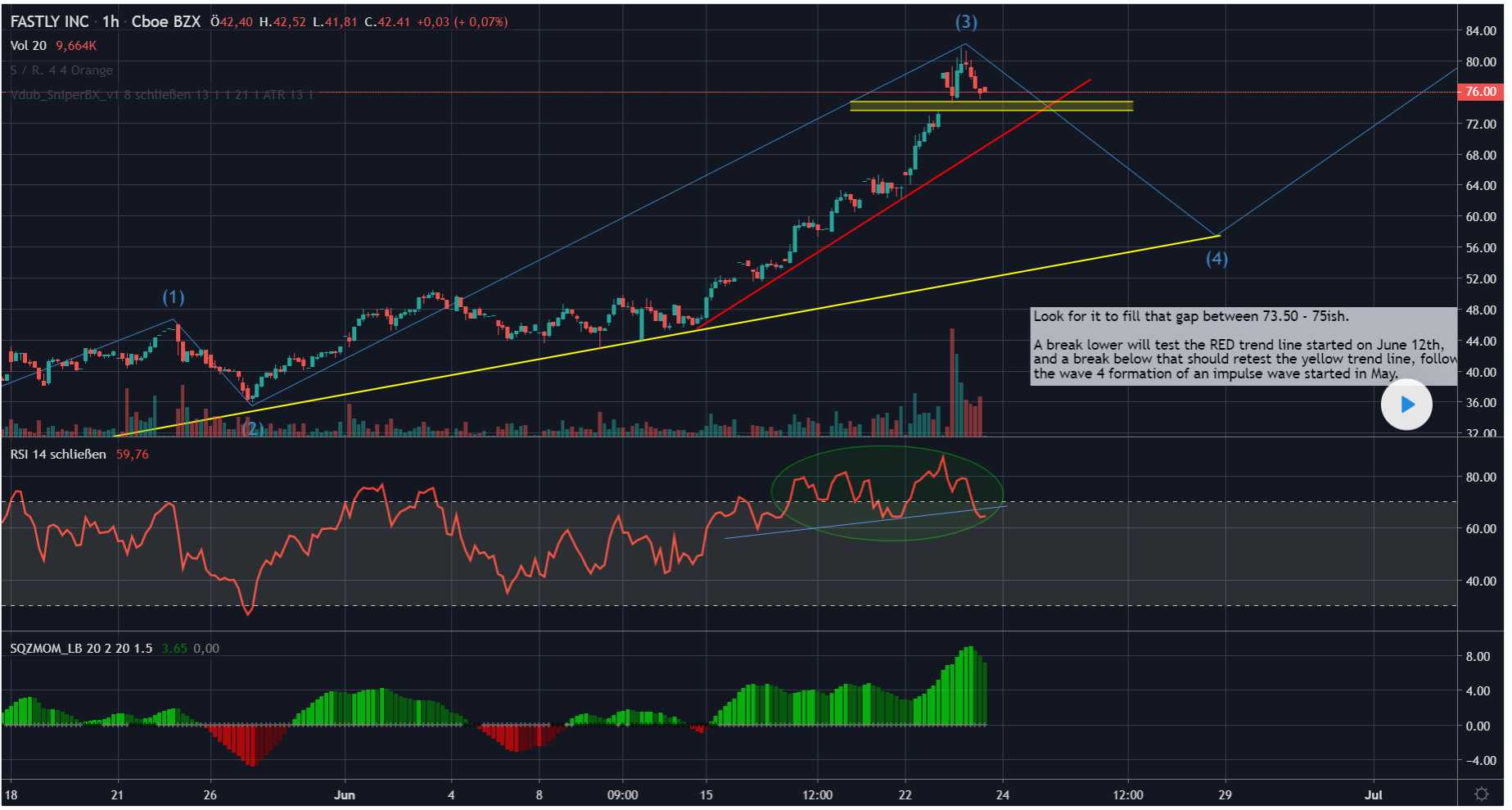 $ FSLY hat seit dem Gewinnbericht von Anfang Mai fast jeden Tag einen Riss bekommen . Ich bin langfristig bullisch , aber es sieht so aus, als könnten wir uns dem Ende von Welle 3 oder dem Beginn von Welle 4 einer Impulswelle nähern.