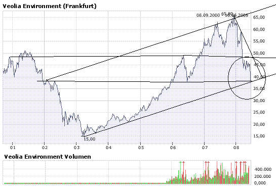 Die Aktie von Veolia Environnement notiert in Paris derzeit bei 36,15 Euro (+8,72 Prozent). (07.08.2008/ac/n/a)
