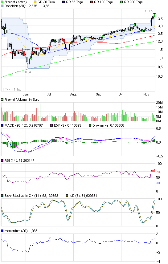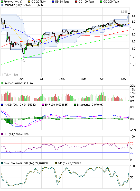 In jedem Fall ein positives mittelfristiges Signak, die 13,6 überwunden zu haben. Wäre wichtig wenn es gleich noch über 14 geht, damit der Durchbruch signifikant ist.