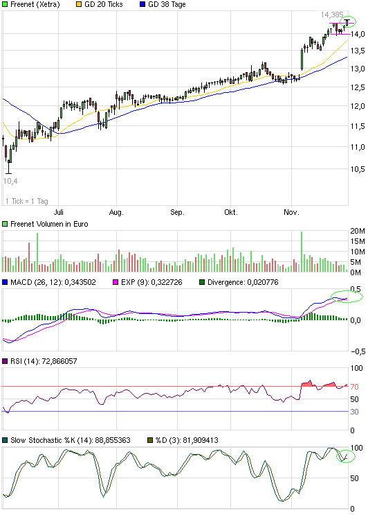 eigentlich schon unglaublich, wie Freenet nach den Zahlen abging. Gut, Prognose rauf, toller CF, damit auch zumindest 1,20 Euro oder sogar 1,30 Euro Dividende in Aussicht, aber das ging dann doch zu fix.