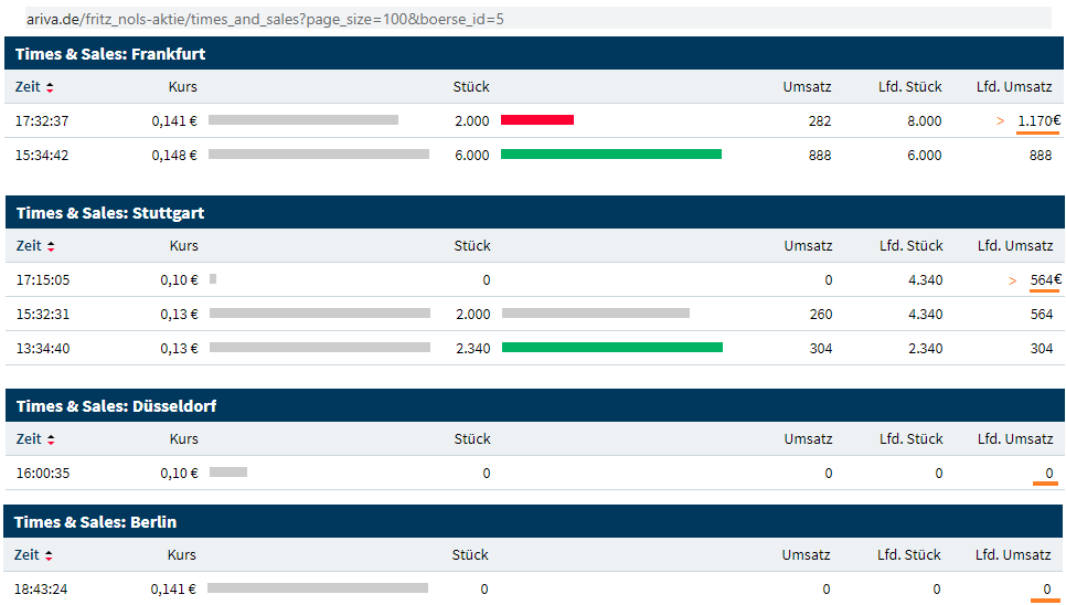 Erste Umsätze zu 0.13 und wenige zu 0.148