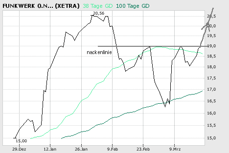 Die positiven Signale hätten nicht getäuscht: Nach einer beachtlichen Rally in den letzten Wochen notiere die Aktie der Funkwerk AG knapp unterhalb des Widerstands von 20 Euro.