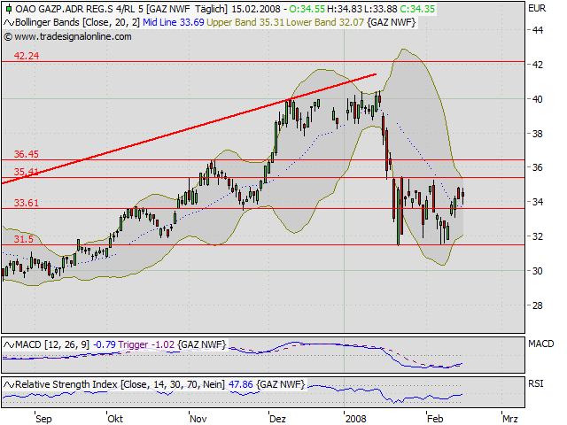 Einverstanden: Widerstand liegt bei 320 Rubel ist nämlich etwa 35,40/35,50 Euro.Vielleicht Wahlergebniss am 2 März gibt die Aktie notige Kraft um diese Widerstand zu brechen.