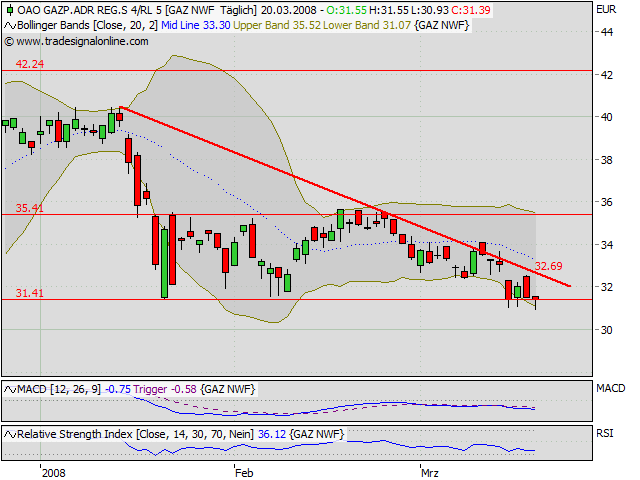 Der Kurs setzt auf SK-Basis genau auf der Unterstützung bei 31,39 auf.