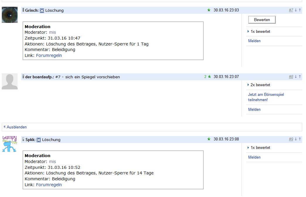 Umso mehr, die Postings waren,- also was den Inhalt angeht, was da stand - die waren nämlich im Prinzip EXAKT gleicht - warum also der gewaltige Unterschied bei Moderation??