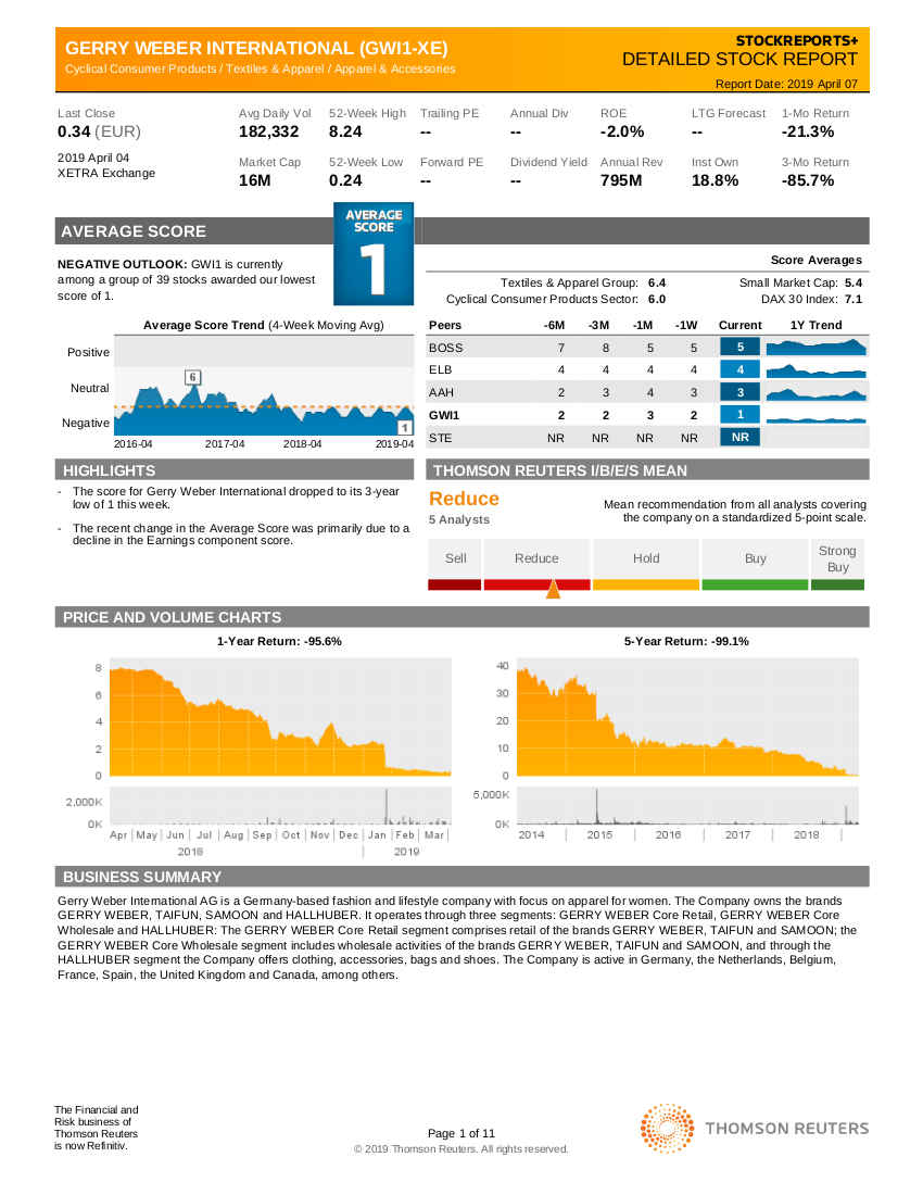 Steinhoff hat ganz andere tiefere Probleme. Bei Gerry Weber kann man an der Kostenschraube drehen, bei Steinhoff muss man die Margen erhöhen und daher kann man sagen, dass Steinhoff durch das CVA in einer deutlich schlechteren Lage für die Aktionäre ist, als es hier bei Gerry Weber ist.