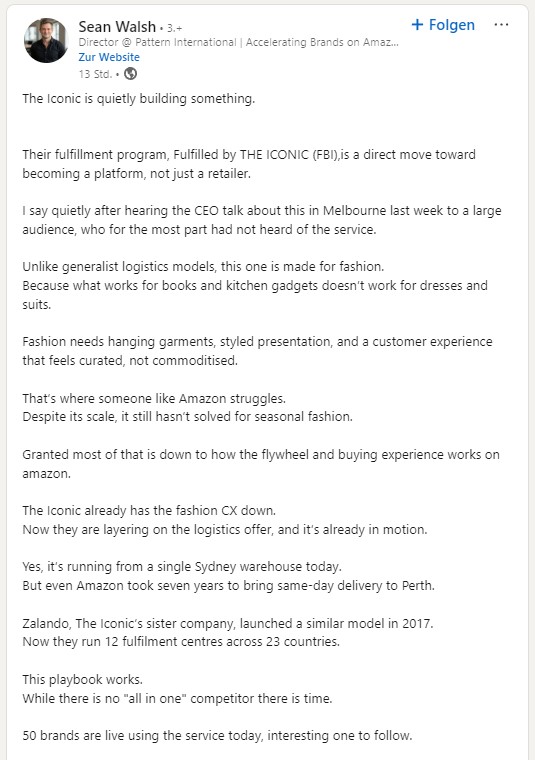 als wenn der frühere LAMODA CEO (Jere Calmes) auch in seiner jetzigen Funktion bei TheICONIC, diese als profitabelste Tochter an die Spitze zu führen.